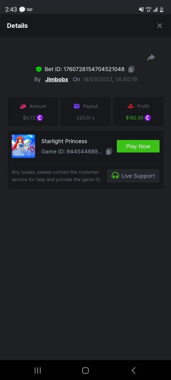 2. https://bc.game/#/sd/115PVL38IBP2XF The second photo. The 50x should count. That was a max win. This contest was posted 5 minutes after I won that lol