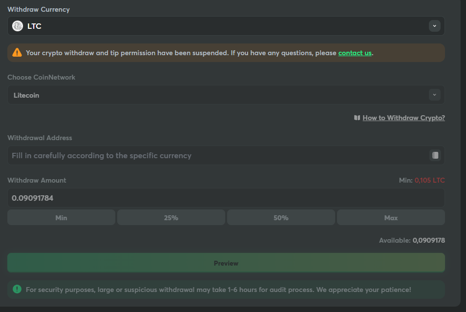 crypto withdraw and tip permission have been suspended