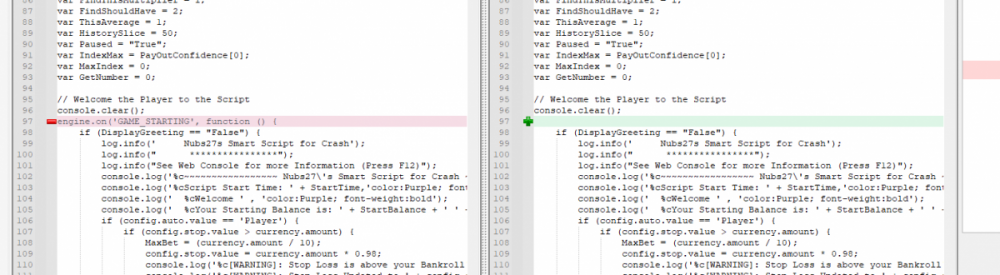 i can why don't you look at how i am doing in the script above it. Essentually they switched from using an event broadcast style to just having you declare a delegate. So here is a quick and dirty refactor of the two methods that were important. I left most everything as is. Things i am sure are going to break. The getting of the history. They not longer give you back more than 10 games and the script uses 200 to look for trends. It has some good concept but needs some refactoring for readability and maintainability, but i love things like using the random numbers for multipliers. I swear they are using machine learning for pattern recognition so that helps., I like the idea of limiting max bet to 10% of your bank roll. I don't play trendball so i can't really speak to the actual strategy at all because i don't know. Before i post the script with fixes so it uses the newer api and events that they still support here is a quick diff of the two scripts. The changes look like more than they actually are essentially all that happened was the game ended event's contents was moved to the then delegate of the onbet method. and i fixed some other minor things that would have throw exceptions like how to get the last games history since that has changed is isn't based back after the crash. Also just fair warning this method i don't believe is going to work because engine.getHistory() if it doesn't throw an exception it will just return null from what i have seen or you may get the last 10 games only along with a warning saying this method of accessing history is deprecated and you need to start saving your own historical results or something like that. ************************************************************************** Script Starting *********************************************************************************************** //******************* Nubs27's Smart Script for Crash ******************* // // // // If you find this script helpful please consider donating to Nubs27 or tipping on NanoGames.io: // Referral Link: https://n-luzqe.nanogames.io/ // // Donations accepted in many coin/token types. List & Addresses: // https://sites.google.com/view/nanogamescrashscripts/home/donation-addresses // // // var config = { mainTitle: { label: '*** Nubs27\'s Smart Script for Crash ***', type: 'title' }, auto: { label: '', value: 'Script', type: 'radio', options: [ { value: 'Script', label: 'Script chooses Base Bet'}, { value: 'Player', label: 'Player chooses Base Bet'} ]}, bet: { label: 'Base Bet', value: currency.minAmount, type: 'number' }, lossTitle: { label: 'Stop When ', type: 'title' }, stop: { label: 'Coins Lost >', value: 1, type: 'number' }, end: { label: 'Minutes >', value: 250, type: 'number' }, profit: { label: 'Profit >', value: 100, type: 'number' }, }; function main () { //PayOuts checked in the Stats Update const MultiplierArray = [2.5, 3.00, 5.00, 6.00, 7.00]; const LMultiplierArray = [10.00, 20.00, 50.00, 100.00]; var version = "v2.3"; var PayOutPercents = []; var PayOutConfidence = []; var Array2Filter = []; var FilteredArray = []; var ScriptHistory = []; var Trains = []; // Red Train IDs - finding gaps between & correlation between gap & duration var History = []; var RoundsPlayed = 0; var RoundsViewed = 0; var LastGameID = 1; var CurrentGameID = LastGameID + 1; var MinimumBet = currency.minAmount; var MaxBet = (currency.amount / 10); var TotalBets = 0; var CurrentMultiplier = MultiplierArray[1]; var LastMultiplier = MultiplierArray[1]; var MaxLossesEncountered = 3; var MostLost = 0; var LargestMulitplier = 2; var BaseBet = config.bet.value; var CurrentBet = BaseBet; var LastBet = BaseBet; var LastShrek = CurrentGameID; var LastTrain = 0; var Gap = 0; var AverageGap = 0; var LargestBet = [0,0]; var Enable100ID = 1000000; var LastResult = "Won"; var CoinLost = 0; var StopLossCoin = config.stop.value; var Losses = 0; var Wins = 0; var Red = 0; var Green = 0; var StartTime = new Date(); var EndTime = new Date(); var TimeDiff = (EndTime - StartTime); var StartBalance = currency.amount; var EndBalance = 0; var Profit = 0; var ATHProfit = 0; var ProfPerMin = 0; var NetProfit = 0; var DisplayGreeting = "False"; var GotHistory = "False"; var BetYet = "False"; var LoggedBetData = "False"; var GameInfoLogged = "False"; var StrategyFound = "False"; var IsPlaying = "False"; var UpdateBets = "False"; var Enable100 = "False"; var LastCrash = 0; var PrevCashOut = 0; var WonAmount = 0; var FindThisMultiplier = 1; var FindShouldHave = 2; var ThisAverage = 1; var HistorySlice = 50; var Paused = "True"; var IndexMax = PayOutConfidence[0]; var MaxIndex = 0; var GetNumber = 0; // Welcome the Player to the Script console.clear(); if (DisplayGreeting == "False") { log.info(' Nubs27s Smart Script for Crash'); log.info(" ****************"); log.info("See Web Console for more Information (Press F12)"); console.log('%c~~~~~~~~~~~~~~~~~ Nubs27\'s Smart Script for Crash ~~~~~~~~~~~~~~~~~','color:Purple; font-weight:bold'); console.log('%cScript Start Time: ' + StartTime,'color:Purple; font-weight:200'); console.log(' %cWelcome ' , 'color:Purple; font-weight:bold'); console.log(' %cYour Starting Balance is: ' + StartBalance + ' ' + currency.currencyName, 'color:Purple; font-weight:bold'); if (config.auto.value == 'Player') { if (config.stop.value > currency.amount) { MaxBet = (currency.amount / 10); config.stop.value = currency.amount * 0.98; console.log('%c[WARNING]: Stop Loss is above your Bankroll','color:Orange; font-weight:bold'); console.log('%c[WARNING]: Stop Loss Updated to ' + config.stop.value, 'color:Orange; font-weight:bold'); } if (config.bet.value > (config.stop.value / 15000)) { log.info('[WARNING]: Script Recommends a bankroll of at least ' + (BaseBet * 15000) + '' + currency.currencyName + ' for the Base Bet you provided'); log.info('[WARNING]: Script Recommends a bankroll of at least ' + (BaseBet * 20000) + '' + currency.currencyName + ' for the Base Bet you provided'); log.info('[WA