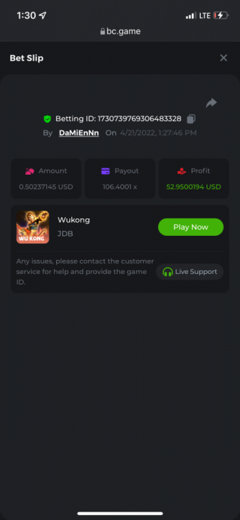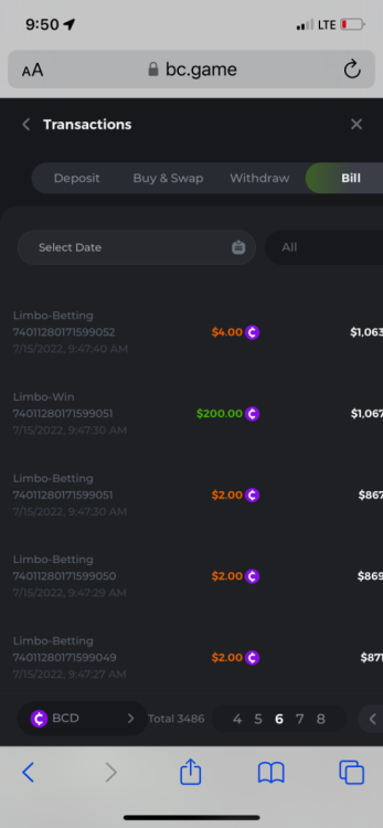 2. Limbo $2.00 bet 100x Limbo-Win 74011280171599051 7/15/2022, 9:47:30 AM $200.00 ☝lost bet ID link. So copied and pasted from my wallet transactions. https://bc.game/sd/?sd=10ORWSSCI1A58Z $4.00 bet 20x https://bc.game/sd/?sd=10ORXEQA92L4B7 $0.25 bet 500x Bounty.